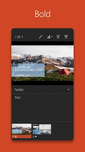 The PowerPoint application gives you access to the familiar tool that you know and use on all devices. Quickly access PowerPoint to create, edit, view, present or share quickly and easily from anywhere. Do you need to quickly access the most recently used PowerPoint presentation files while on the move? No problem, PowerPoint provides a quick view of the files you have been working on to facilitate access on any device.